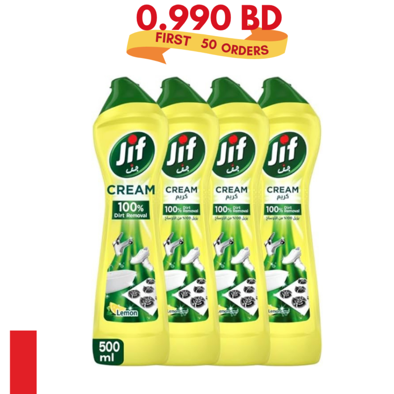 جيف منظف كريمي، بتقنية البلورات الدقيقة، الليمون، يزيل الشحوم والطعام المحترق وبقع الترسبات الكلسية، 4 × 500 مل