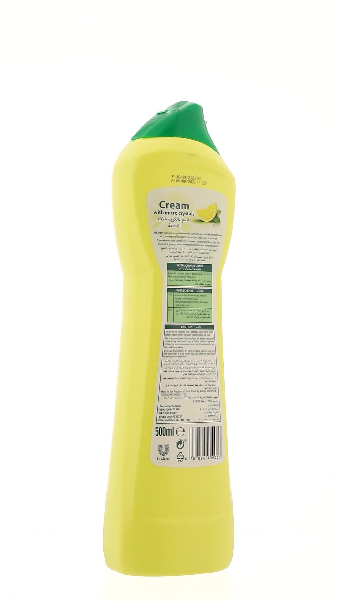 - كيفية الاستخدام: ضعيه على الأسطح باستخدام إسفنجة أو قطعة قماش مبللة. امسحي بلطف واشطفي بعناية. منظف الكريم الخاص بنا قوي على الأوساخ وسهل الشطف.