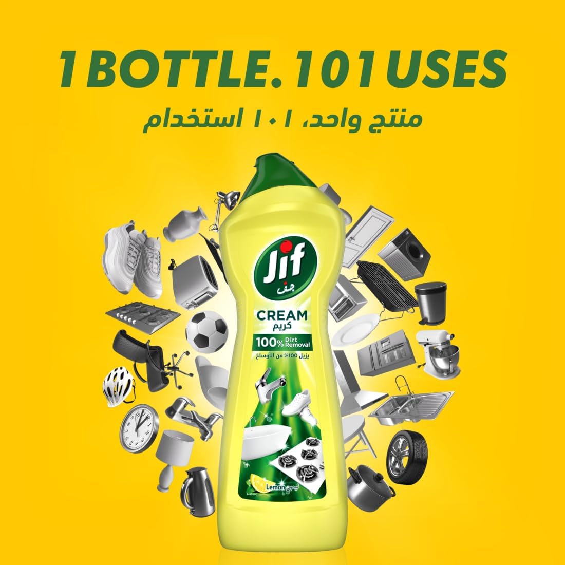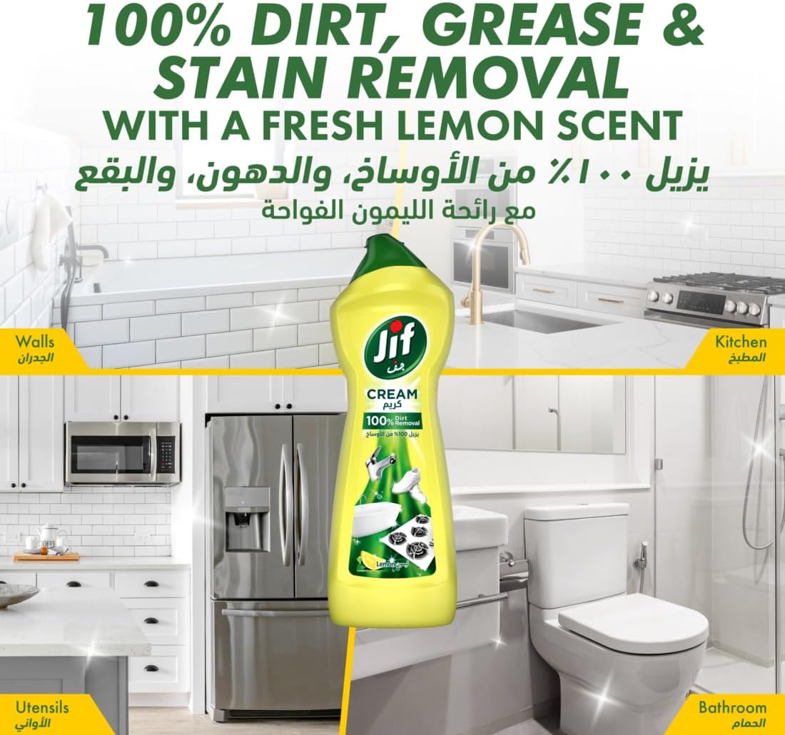- يجعل أي مهمة تنظيف تبدو سهلة: منظف الكريم متعدد الأغراض من Jif يجعل مهام التنظيف سهلة. باستخدام تقنية قوية، فإنه يزيل جميع أنواع الأوساخ والبقع بسهولة.